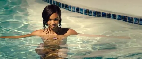 చానెల్ ఇమాన్ లోతైన నెక్లైన్తో బహిర్గతం చేసే వస్త్రాన్ని ముందు తలుపు తెరుస్తున్నాడు. చానెల్ ఆమె వక్షోజాలను వైపు నుండి బహిర్గతం చేయడానికి వస్త్రాన్ని నేలమీద పడవేస్తుంది. ఒక వ్యక్తి చూస్తున్నట్లుగా, ఆమె ఈత కొలనులో టాప్ లెస్ గా చూస్తాము. చానెల్ ఇమాన్ యొక్క నగ్న ఉరుగుజ్జులు స్పష్టమైన నీటి క్రింద కనిపిస్తాయి.