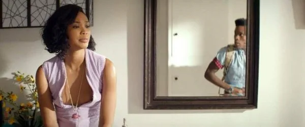 చివరికి, చానెల్ ఇమాన్ బాత్రూంలోకి నడుస్తూ పర్పుల్ బాడీసూట్లో కౌంటర్టాప్లో కూర్చున్నాడు. మేము ఆమె టాంగ్ ప్యాంటీలో టాప్లెస్గా చూస్తాము, ఎందుకంటే ఆమె ఒక వ్యక్తిని బాత్రూమ్ అంతస్తులో వేసుకుని, అనుకోకుండా అతనిపై అనారోగ్యానికి గురవుతుంది. ఆ వ్యక్తి శుభ్రపరిచిన తరువాత, ఆమె నవ్వుతుంది మరియు ఆ వ్యక్తి ఆమెను గది నుండి బయటకు తీసుకువెళతాడు. చానెల్ ఇమాన్ తన నగ్న రొమ్ములతో ఆమె భుజాలపై వస్త్రాన్ని ధరించాడు.